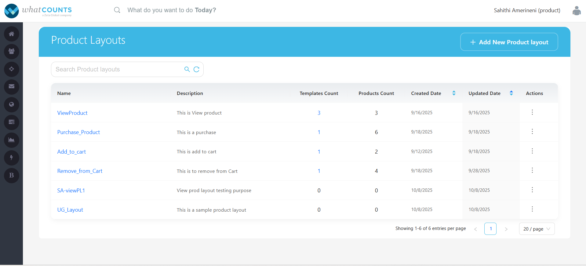 Once product layouts are created, you can easily manage them through the Product Layout Dashboard. The dashboard provides an overview of all existing layouts and the templates in which they are used.