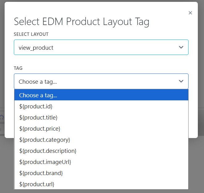 Once you select the product layout, you will be able to see the list of tags available or configured for that layout in the realm settings.