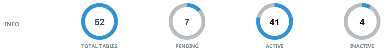 At the top of the page, a few charts display quick statistics about the Tables, including the Total number of tables and how many tables each are in Pending, Active, or Inactive status.