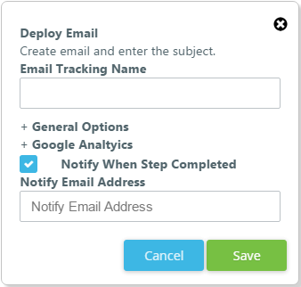- If you wish to send a Notification to a specific email address after the message is deployed, select Notify When Step Completed, then enter a Notify Email Address.