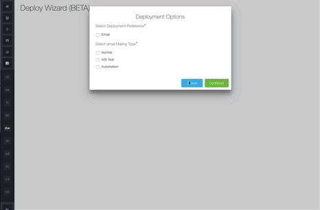 Recently we have made improvements to how email campaigns are deployed through the platform. To access the new tool, select Deploy Wizard from the Tasks heading in the navigation menu