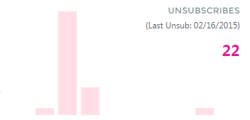 The Unsubscribes bar graph shows the number of unsubscribe events per day for the Date Range, the total number of unsubscribe events for the period, and the date the last subscription was removed.