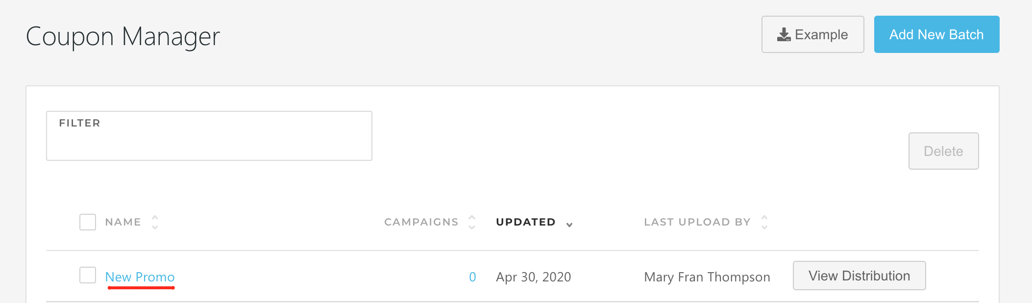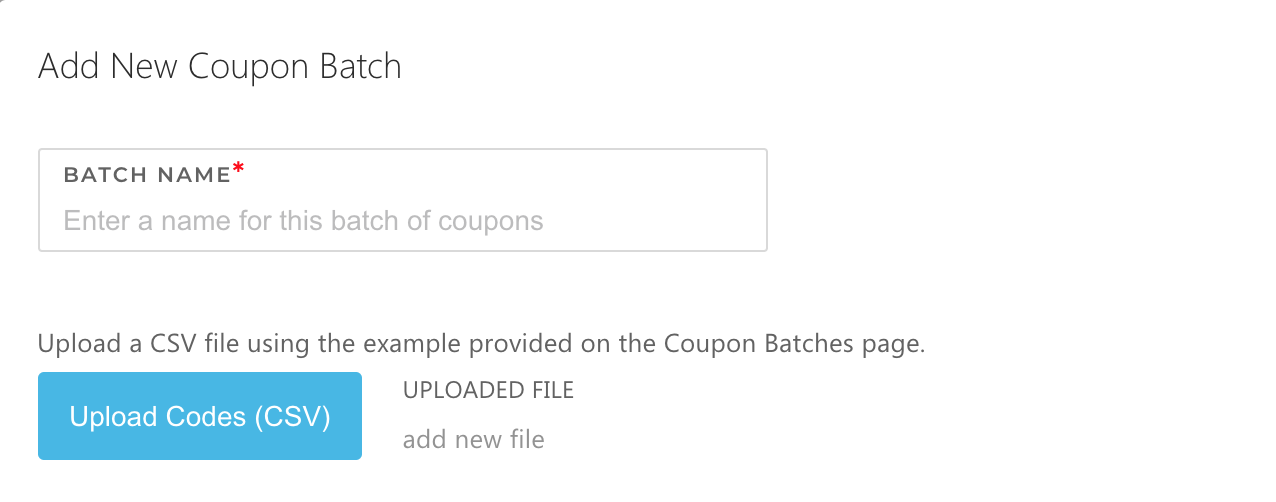 Note: The max number of coupons per batch is 20 million. You may continue to upload coupons to a batch until you reach this limit. Any unsent coupons that exceed the “send by” date will be purged from the batch at that time.